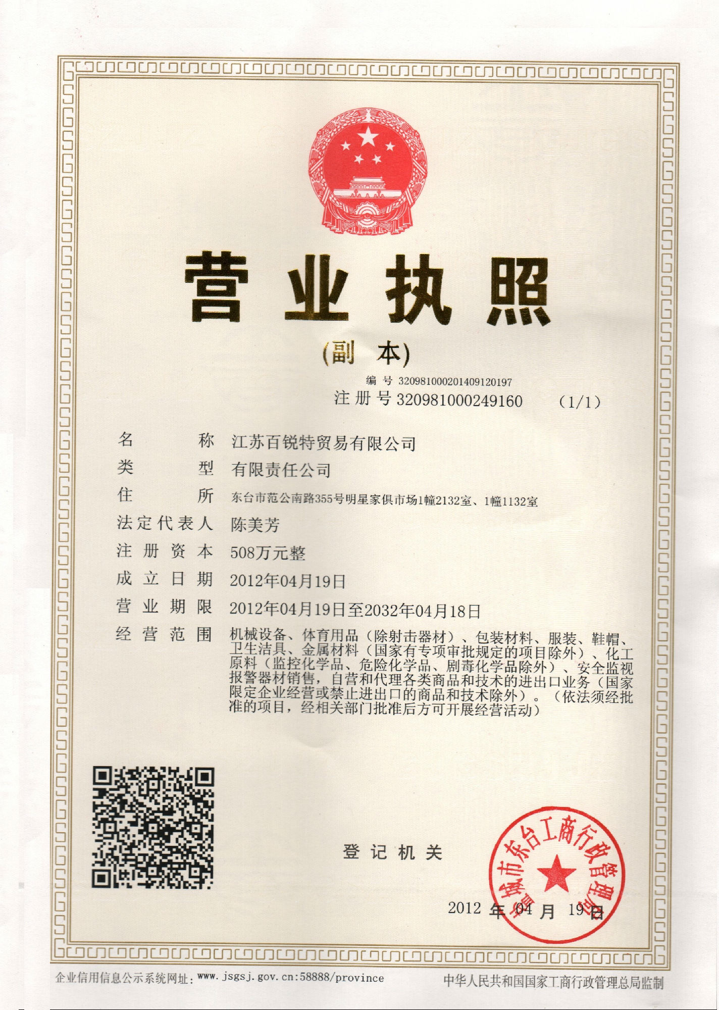 營業(yè)執(zhí)照副本2014版