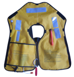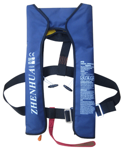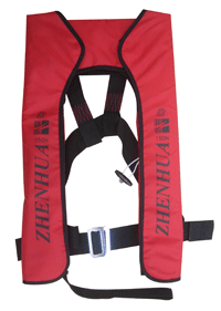 性能特點:單氣室氣脹式救生衣,是按照歐洲標(biāo)準(zhǔn)EN396:1993/A1:1998設(shè)計制造,并參照國際標(biāo)準(zhǔn)MSC.81(70)的有關(guān)要求。它由一個尼龍復(fù)合布TPU材料制作的氣室、自動(或手動)充氣裝置、CO2貯氣瓶、嘴吹氣管和外衣套等組成,在遇險落水的緊急情況下,自動充氣裝置可在5秒鐘內(nèi)對氣室充氣,也可拉手動拉繩對氣室充氣,以保證落水人員的安全。產(chǎn)品體積小、重量輕、穿著舒適、使用方便,適用于各類水上航行船舶作業(yè)人員救生用,也可以作為個人防護(hù)用品休閑救生用。ZHGQYT-0511、 ZHGQYT-0521兩款救生衣通過德國勞氏船級社CE認(rèn)證,ZHGQY(T)ZD型通過中國船級社(CCS)認(rèn)可,其中ZHGQY(T)ZD-Ⅰ型是專為漁民作業(yè)方便而設(shè)計,通過中華人民共和國漁業(yè)船舶檢驗局認(rèn)可。